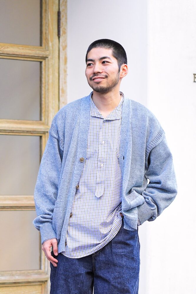 ボタンがついていないルーズめの首元はいまっぽくて着やすく、よくシンプルな白Tシャツをインナーに合わせています。メイドインジャパンのアイテムは、縫製の丁寧さや優れた生産背景があるので、特に意識はしていなくても自然に手に取ってしまうことが多いですね。愛着も湧きやすいです」