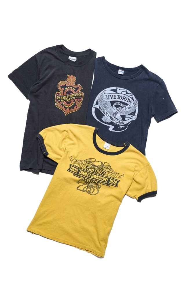 ハーレダビッドソンのTシャツは80s。1万4080円(イエロー)、1万7380円(リーフ)、2万1780円(イーグル)