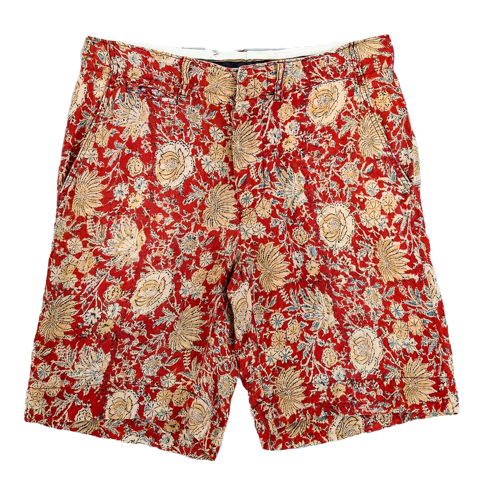 ボタニカル柄がプリントされたリネンショーツ。さながらドレスパンツ然としたディテールなど、ラルフローレンらしい作り込みにも注目。7700円