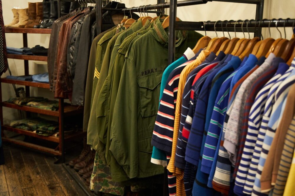 ズールと言えば、戦前のワークウエアやモーターサイクルジャケット、ハワイアンシャツといった迫力あるヴィンテージの印象が強いが、そのテイストを活かしつつも、グッドレギュラーやトレンドのアイテムもうまくミックスされており、多くの古着好きが楽しめるラインナップになっている。またバーバリーなどのヨーロッパの名門ブランドも網羅していた。