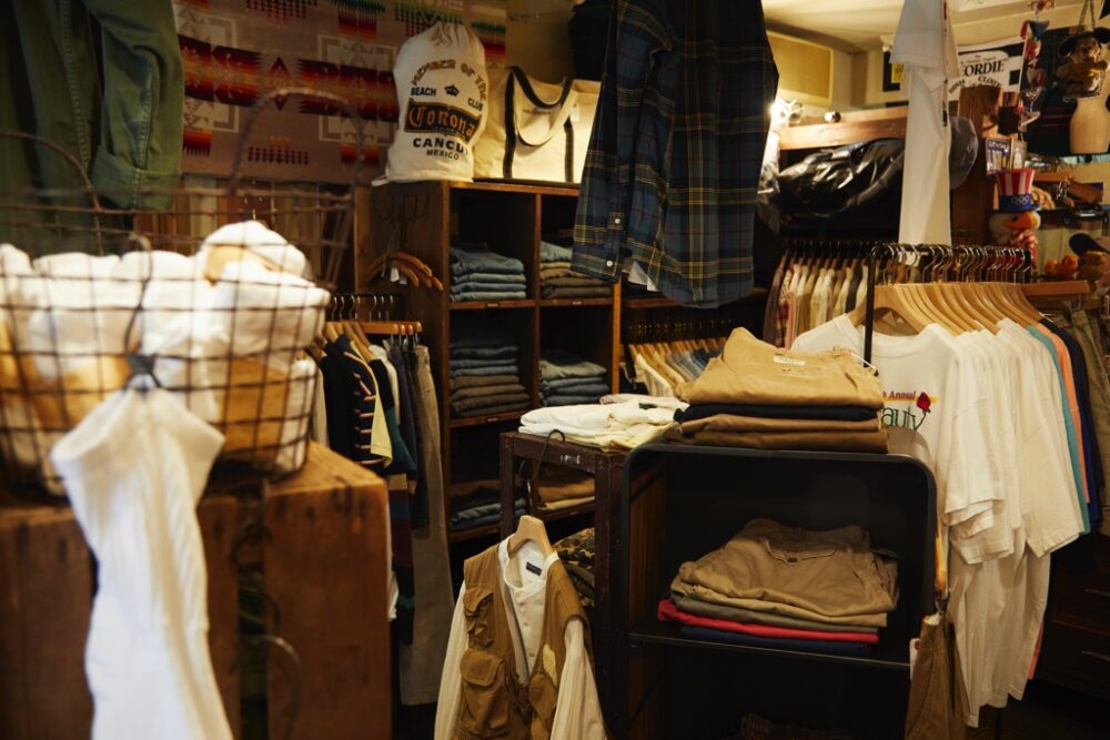 定期的にアメリカ買い付けを行い、しっかりと店内に現地の風を通すことで“小アメリカ” 的な雰囲気を生み出すグランベリージャム。アメリカ製のリーバイス501やラルフローレンなど王道アメカジアイテムが揃う実力派として古着ファンが頼りにするお店のひとつだ。