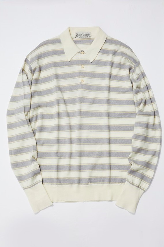 90年代に一世を風靡したちょっとイナタい雰囲気を残す、ボーダー柄のポロニット。デッドストックながら大きなサイズ感など現代的。2万4000円