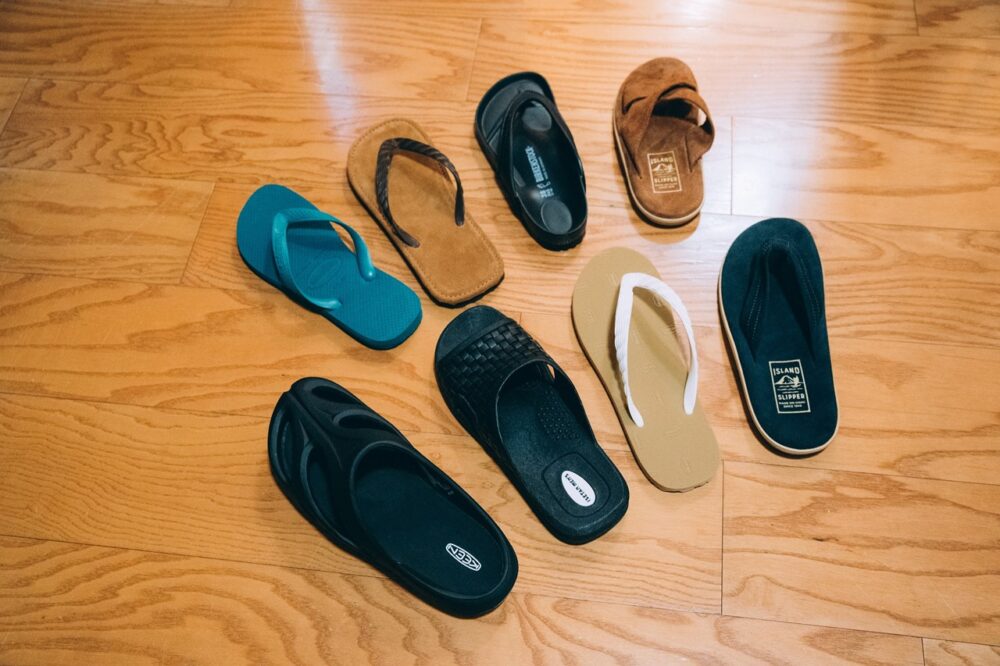 下段左から、<KEEN/キーン>6,380円、<OKABASHI/オカバシ>3,960円、<九十九/ツクモ>4,400円<ISLAND SLIPPER/アイランドスリッパ>17,600円