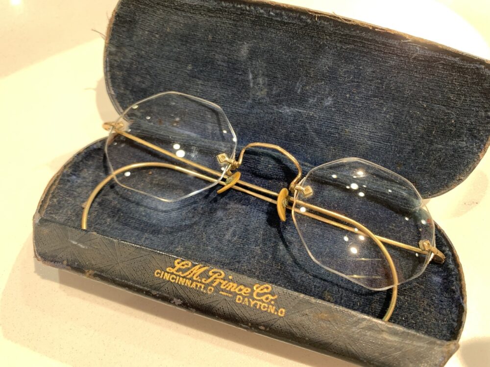 - 所有するビンテージに近い華奢でゴールドのツーポイント(リムレス)