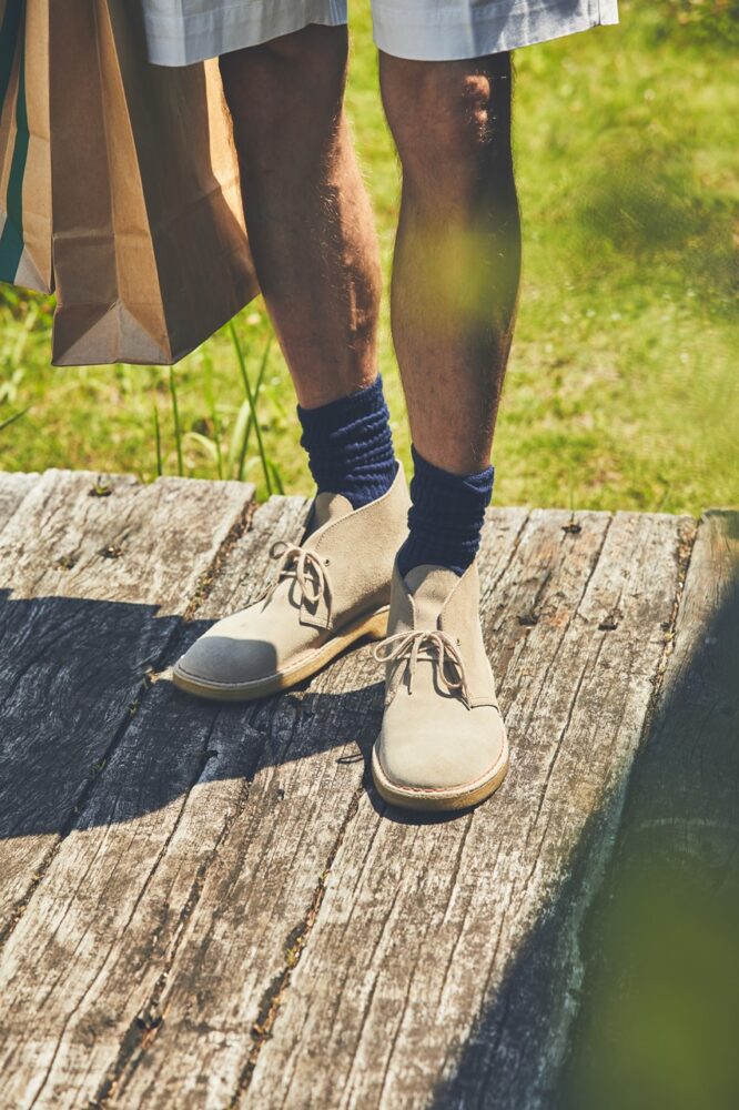 アッパーは英国のタンナー、チャールズ・F・ステッド社が供給するスウェード。木型は、現在まで変わることなく「220」を採用している。地面と接するのは、天然の生ゴムからつくられ適度な弾力性で歩きやすさを約束するクレープソールだ。いたってシンプルながら、非常に独創的。そして、普遍的。だからこそ、時代を超えて履き継がれてきた。