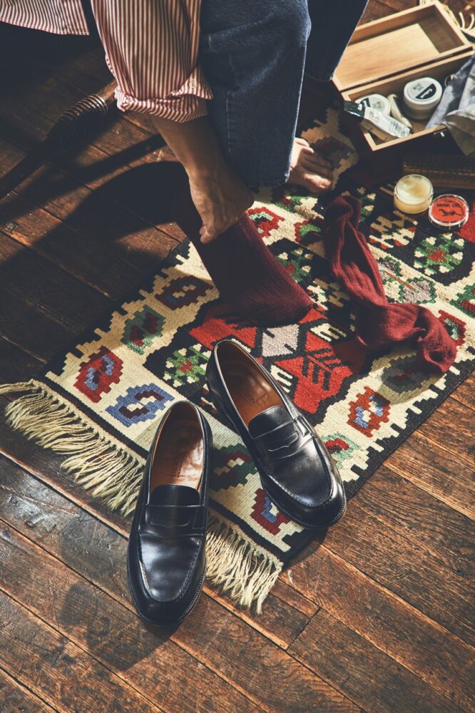 まさにフランスを代表するメゾンであり、そのフラッグシップモデルが、[180 シグニチャーローファー]である。今作は、 1946年に誕生。以来、同じ木型を使ってリモージュの工場にてグッドイヤーウェルテッド製法で作られてきた。カモメ型に象られたサドルストラップが世界中で美しく羽ばたいている。