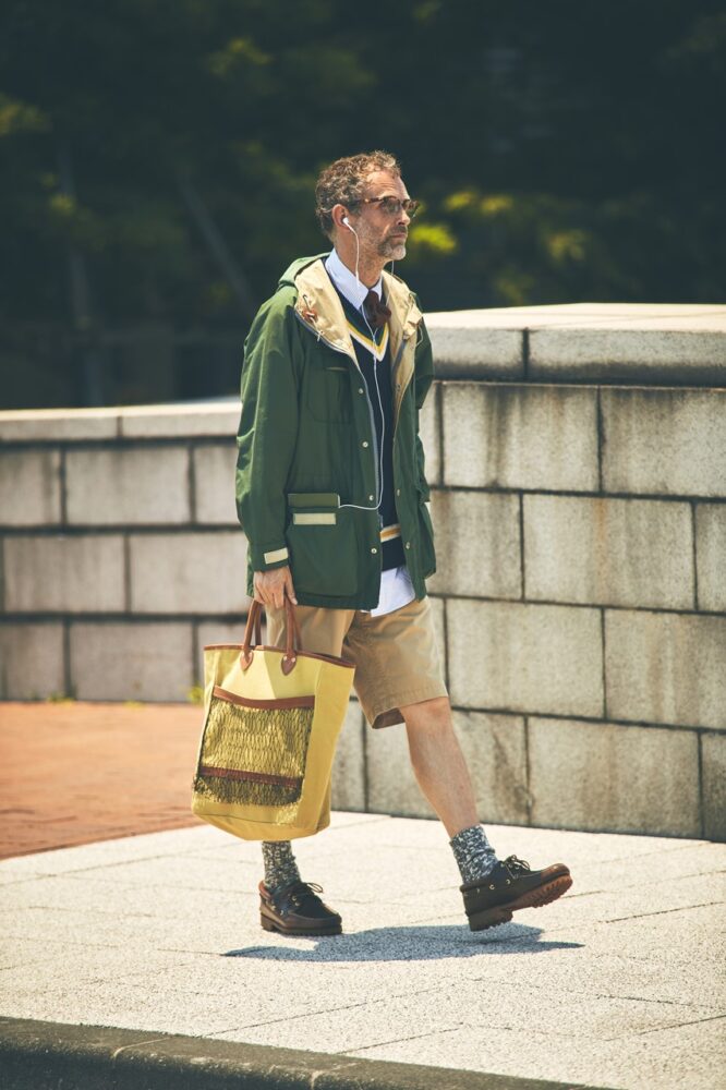 そして、大いなる自然が似合うウエアだからこその包容力だろうか、ラフなオーラを全開にしたスタイリングはもちろん、不思議なことにタイドアップの着こなしまでも悠然とこなす。この包容力たるやファッション界の母なる大地と呼んで差し支えないレベル。多様性と包摂性が叫ばれる時代のフロントランナーである。