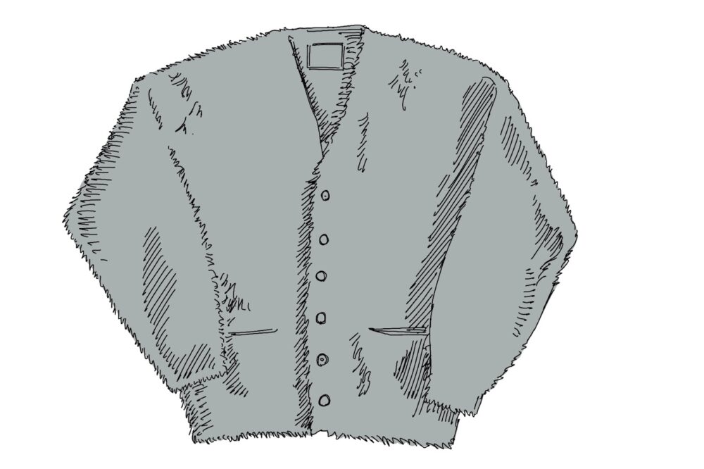 昨今、再び人気が高くなっているモヘアのカーディガンだが、90年代の古着ブームにおけるカーディガンの先駆者といえばカート。彼が好んだカーディガンは60年代頃の古着が多く、リベアーやマクレガー、JCペニーも着用していた。同様に赤黒ボーダーのモヘアセーターも有名だが、これは日本公演の際ファンにもらったものだ。