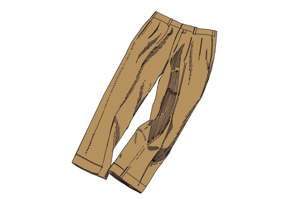 M-51と同様に『アニー・ホール』で見られたのがチノスタイル。ツイードのジャケットにチェックシャツ、そしてボトムには2プリーツ入りカーキのチノパン。懐中時計を収納するウォッチポケットが特徴で、それをパンツインする着こなしが非常にクール。ウディは小柄だったためかシルエットも太く見え、そのラフさがカッコよかった。