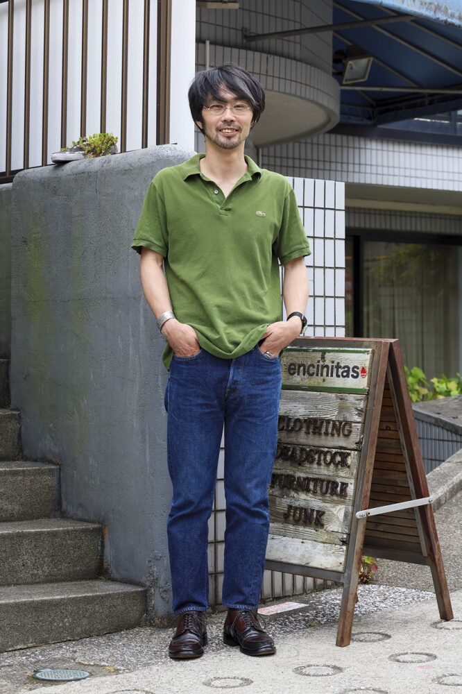 高校生の時に働いていたヴィンテージショップにて1stラコステを入手したという手嶋さん。「その頃から基本的にヨーロッパのものに惹かれるということもあって、ポロシャツもラコステ一択でした」とのこと。また前後の着丈の長さが同 じなのもラコステの魅力のひとつだという。