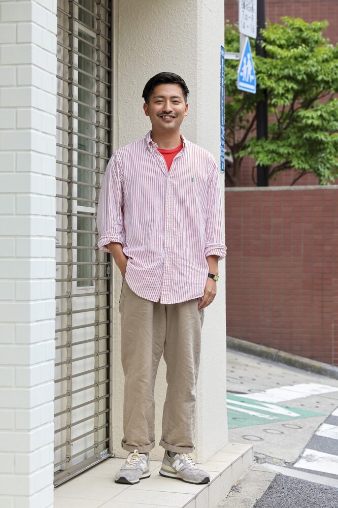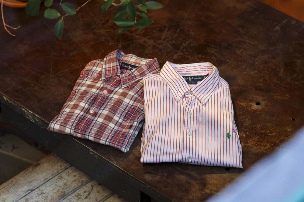 「 ラルフ・ローレンに限らずブルックスブラザーズなど、古着店を回ってはシャツを見てしまいます。新品だとなかなか出てこないような、面白い柄や色味のものが多く、選ぶ楽しさがありますね。また、いなたい雰囲気や遊び心といった “付加価値” も古着ならではだと思っています」。