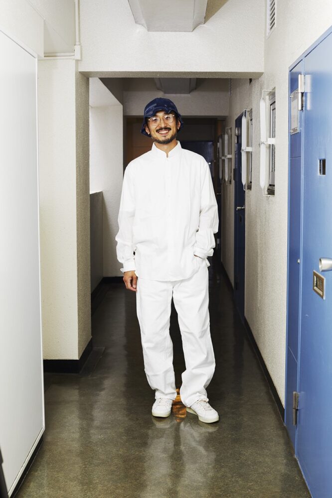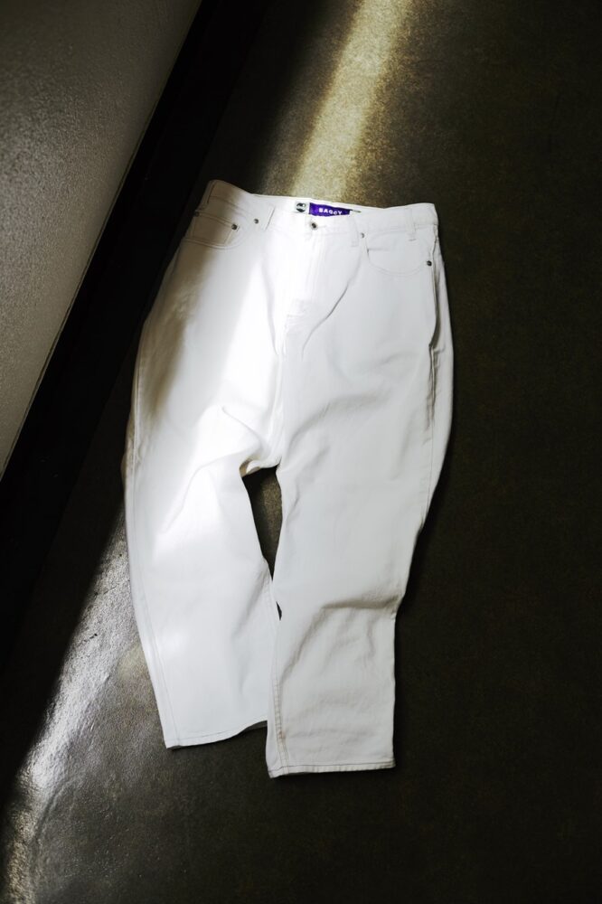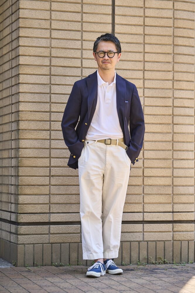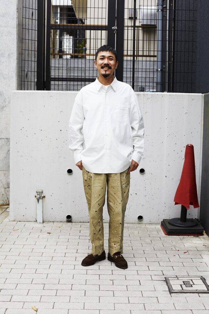 パンツに限らず、素材としてのホワイトデニムをこよなく愛する 。「学生時代にポール・ウェラーのホワイトデニム姿に憧れたのが原体験です」。とはいえ、その頃はまだ白デニムは似合わないと自己判断。「穿いてもいいかな」と思えるようになったのは20代半ばの頃からだ。