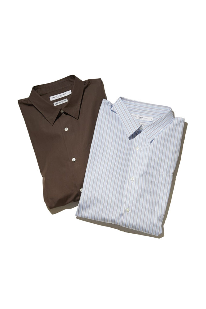 産業革命時代より続くイギリスの老舗シャツ生地メーカーであるトーマスメイソンを使ったシャツ。トラディショナルな生地感をオーバーサイズシルエットでモダンな印象に。「生地は言わずもがな、トレンドをうまく反映したシルエットも絶妙です」 各1万6500円(アーバンリサーチ ルミネ新宿店 050-2017-9004)