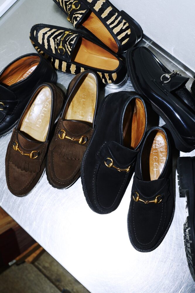 「ビットローファーは昔からある名品ですが、僕が好んで集めているラグソールの仕様は、当初からラインナップされていたものではありません。おそらくトム・フォードがグッチに入った90年代頃から展開されたのではないでしょうか。レザーソールだとドレス的なテイストが強いのですが、スウェードでラグソールの仕様ならカジュアルに履けますし、気を使う必要もありません。様々なバリエーションがあるので、新旧問わず探してみるとおもしろいですよ」