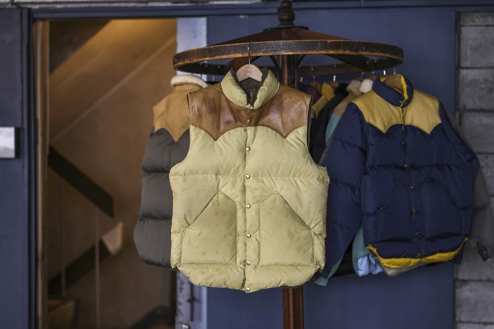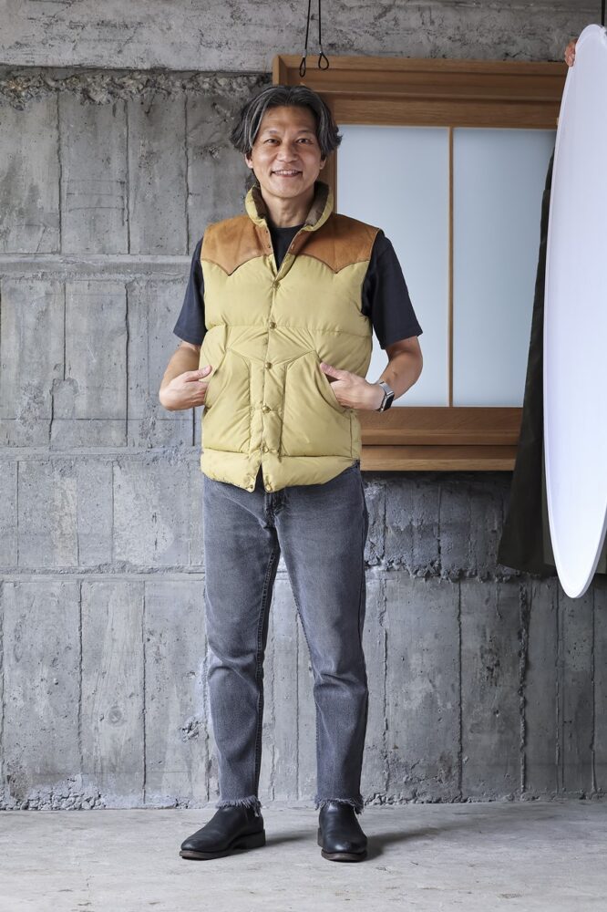 70年代に一世を風靡し、2005年に国内で復刻を果たした、ロッキーマウンテンフェザーベッドのダウンベスト。オリジナルを忠実に再現した現行モデルも人気が高いが、信岡さんは70年代のヴィンテージを定番としてセレクト。