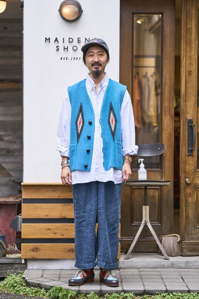 「とはいえ、ファッションの入り口はアメカジでした。かっこいい先輩たちはみんな、オルテガを持っていて自分も憧れた記憶があります。こちらは、自分がバイイングを手がけるようになってからニューメキシコで見つけて購入したものです。ネイティブ柄ではなく、背中に精霊が織り込まれているところに惹かれました」。