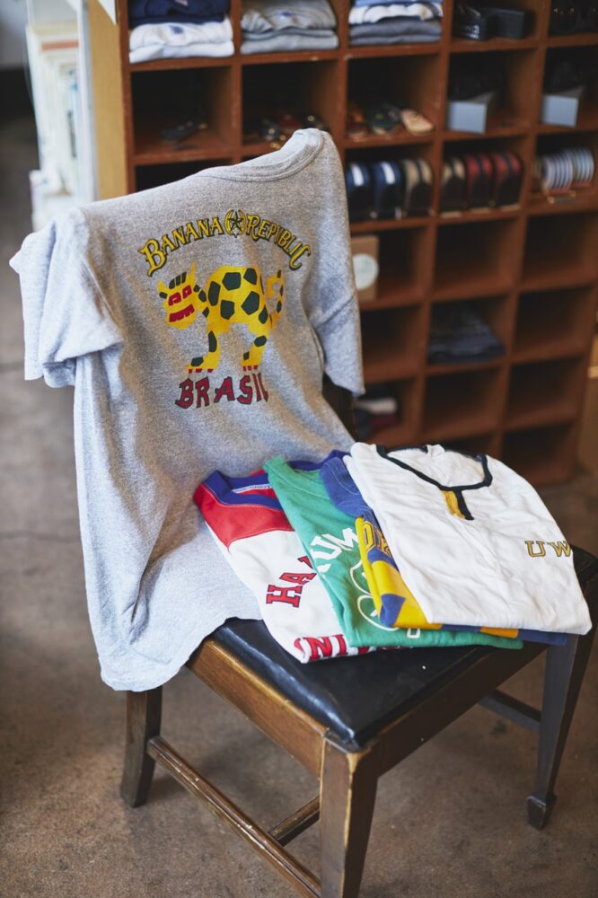 「手放したものも多いですが、現在は古着・新品問わず30枚程度保有しています。リンガー、フットボール、チョコチンなど、単にTシャツと言っても種類が多いので、自然とチャンピオン製品が多く集まっていました。ほとんどが実際にカレッジのオフィシャルとして使用されていたアイテムなので、リアルな感じがして好きですね。年々、プリントの意味を考えて購入するようになりましたが、毎年なにかしら探しています。今年はいま着用しているような、変わったプリントものを探していますがなかなか見つかりません。ショーツに合わせると子供らしくなるという意見もありますが、おじさんになると頑張っても子供っぽく見えないので、気にせず短パンに合わせて着用する日もあります(笑)」
