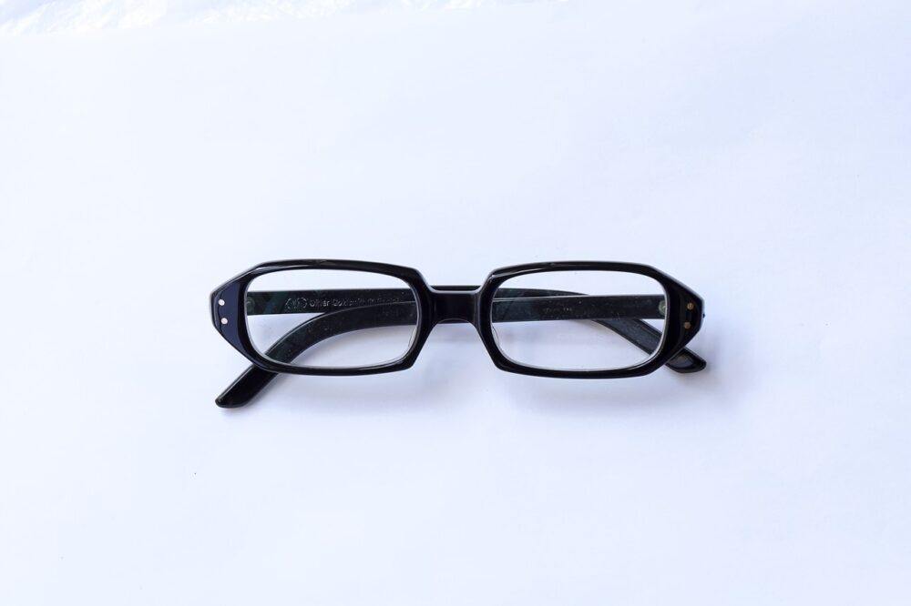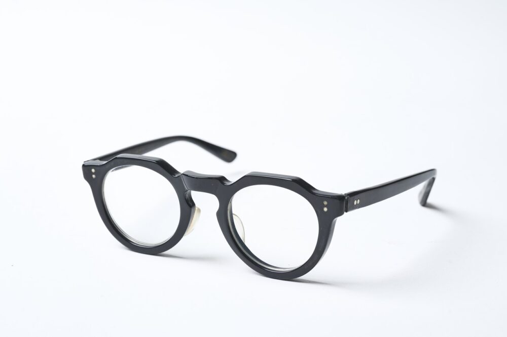 1940~50 年代のフレンチフレーム。セルフレームが登場し始めた年代のもので、アセテート素材ではない本セルの質感が唯一無二。黎明期ゆえの、いい意味でまだクラフト感の薫るシェイプだ。こちらは正方形に近いウェリントンで「パリジャン」と呼ばれるタイプ。