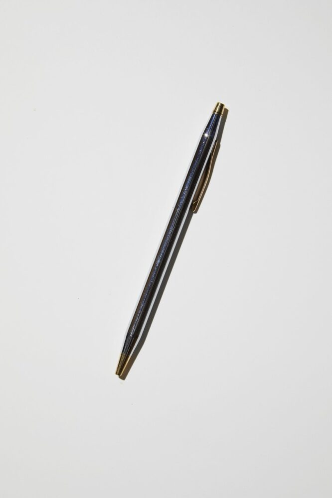 歴代アメリカ大統領が愛用する筆記具メーカーで、その定番モデル。細身のボディに円すい形のコニカルトップというエレガントな形状。「金銀コンビのデザインが自分好み。小ぶりなのが丁度よく、ポケットなどに挿しサイン用に持ち歩いています」