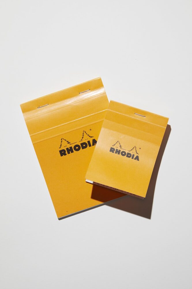 目に鮮やかなオレンジが特徴的な、佇まいの小洒落たメモ帳は、「使うときに気分がアガる」と、服飾業界での愛用者が多い。ミシン目で備わるので、切り取ってちょっとしたポストイット感覚で活用できる。方眼状の罫線も美しい字が書けるポイント。