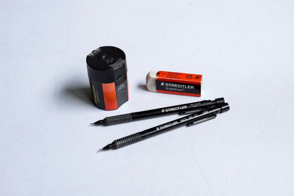 ドイツ生まれのステッドラー。180年以上の歴史を誇り、現在も人気が高い。「質実剛健なデザインの鉛筆削りや消しゴムもいいけど、1番のお気に入りはシャーペン。スチール製ならではの質感と重さが、手にしたときにしっくりきます」