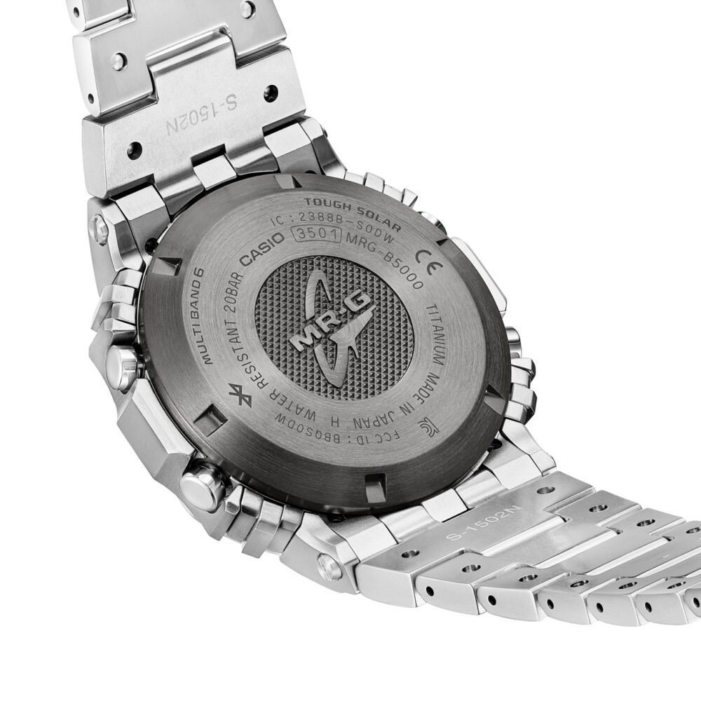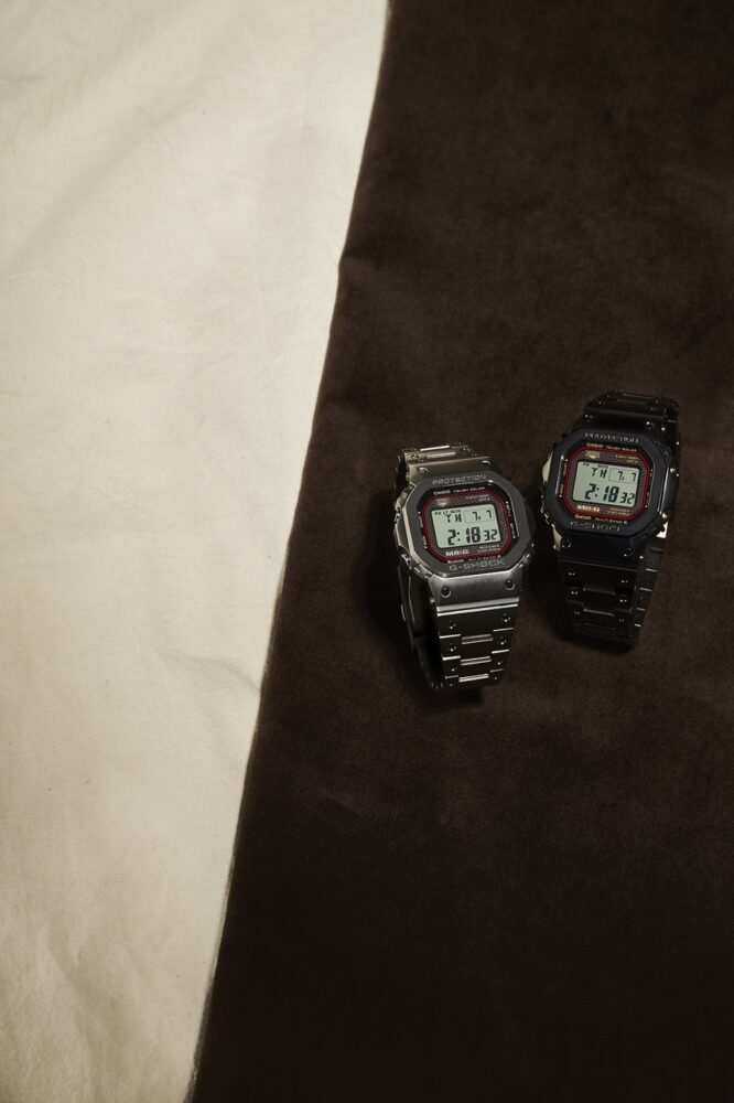 Gショックの最上級ラインで知られる「MR-G」。初代モデルのDW- 5000Cをベースにチタンをはじめとする金属素材を使用し、電波受信機能やブルートゥースによるアプリの連動など、最新技術を搭載したGショックのハイエンドモデル。パーツごとに細部まで磨かれた金属ならではの美しい輝きは高級時計そのもの。左39万6000円、右46万2000円 ※在庫僅少のため品切れの際はご容赦ください