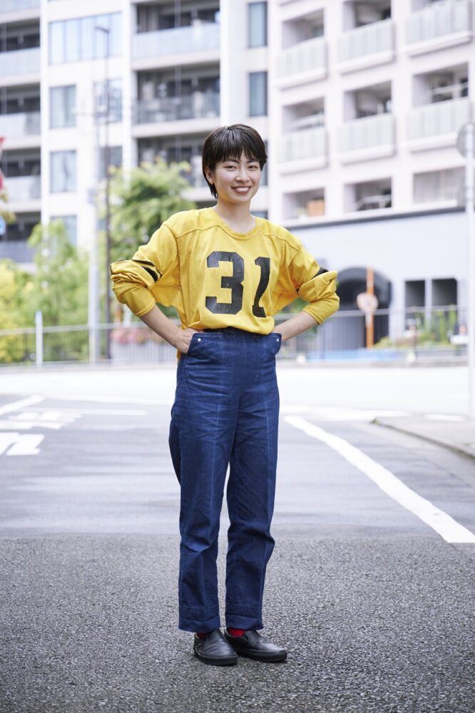 ヴィンテージウエアを都会的に、そしてナチュラルにスタイリングすることに定評のある山口さん。主役はトップスに着用した1940年代のスプリングライダースジャケット。