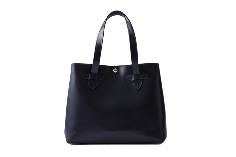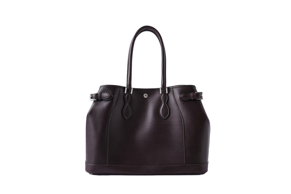 馬具用に開発され、堅牢な革の代名詞ともなっている英国生まれのブライドルレザーを使用したトートバッグ。両側のベルトで開け口のサイズを調節可能。13万2000円(エッティンガー銀座店TEL03-6215-6161)