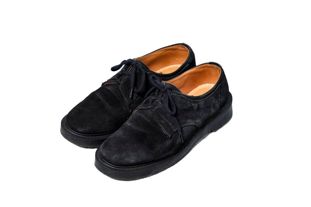 小曽根 これもいろいろあって迷いましたが、まず紹介したいのがこのジョージ コックス。大阪にあるクレイドルというショップで購入した、レアなギリーデザイン。ギリーシューズと言うともっとクラシックなルックスが一般的。ですが、コレはコッペパンのように丸みのあるラストと半透明のラバーソールを合わせており、かなりの脱力系。グレーのツイードや富良野パンツなど、素材感あるトラッド系ボトムスを用いた装いのハズし役として活用しています。