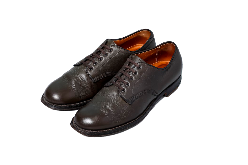 並木 たまたまですが、今日は2ndさんということもあって、オールデンを2足用意しました(笑)。ひとつはミリタリーラストの外羽根プレーントゥ。ユナイテッドアローズとのWネームでオリーブカラーというのが特徴です。アメリカらしい力強いハトメ付きの羽根とラギットな色合い、それにミリタリーラストという組み合わせが非常に高い完成度を産んでいます。