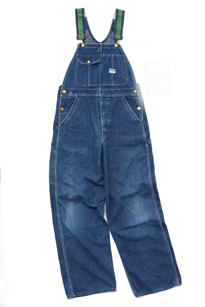 ストライプの肩紐がアクセントのオーバーオール。50~60年代製。2万9980円