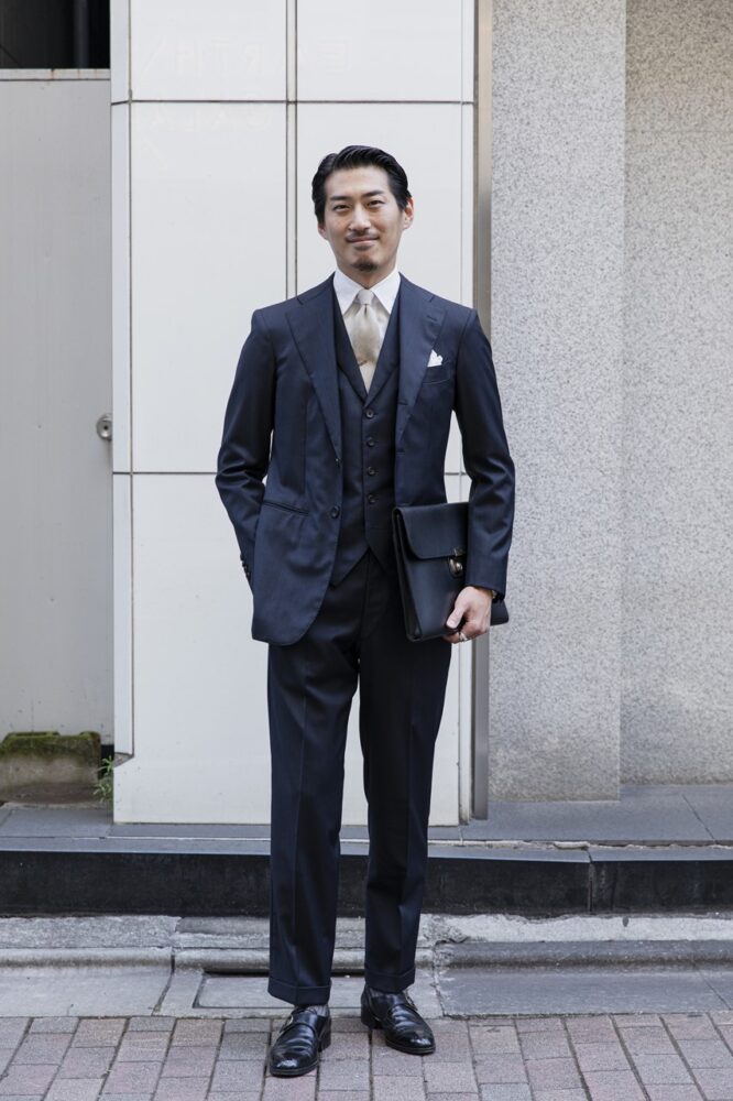 2.「SDI」営業・大橋崇弘さん|クラシコイタリアのスーツをフォーマルに着こなした好例。