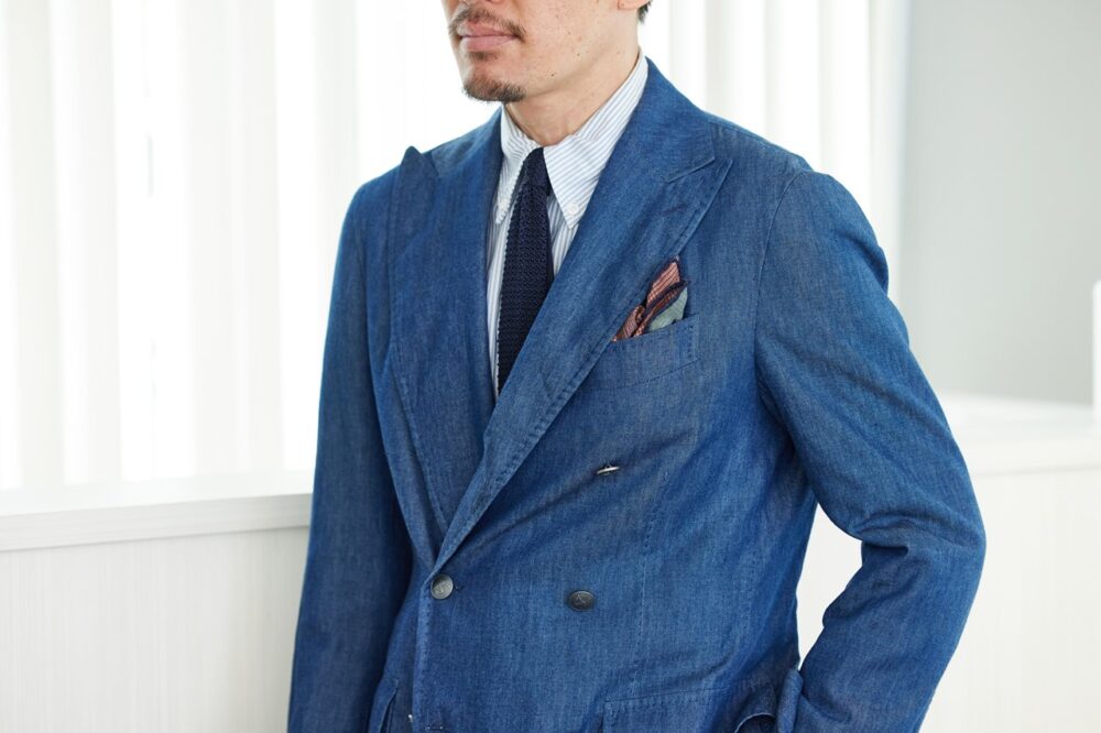 「カジュアルすぎて失礼にならないよう、ダブルブレストで帳尻合わせ。アメリカモノとイタリアモノを使い分けてバランスを取っています」