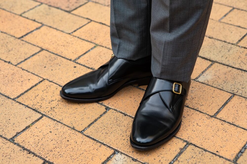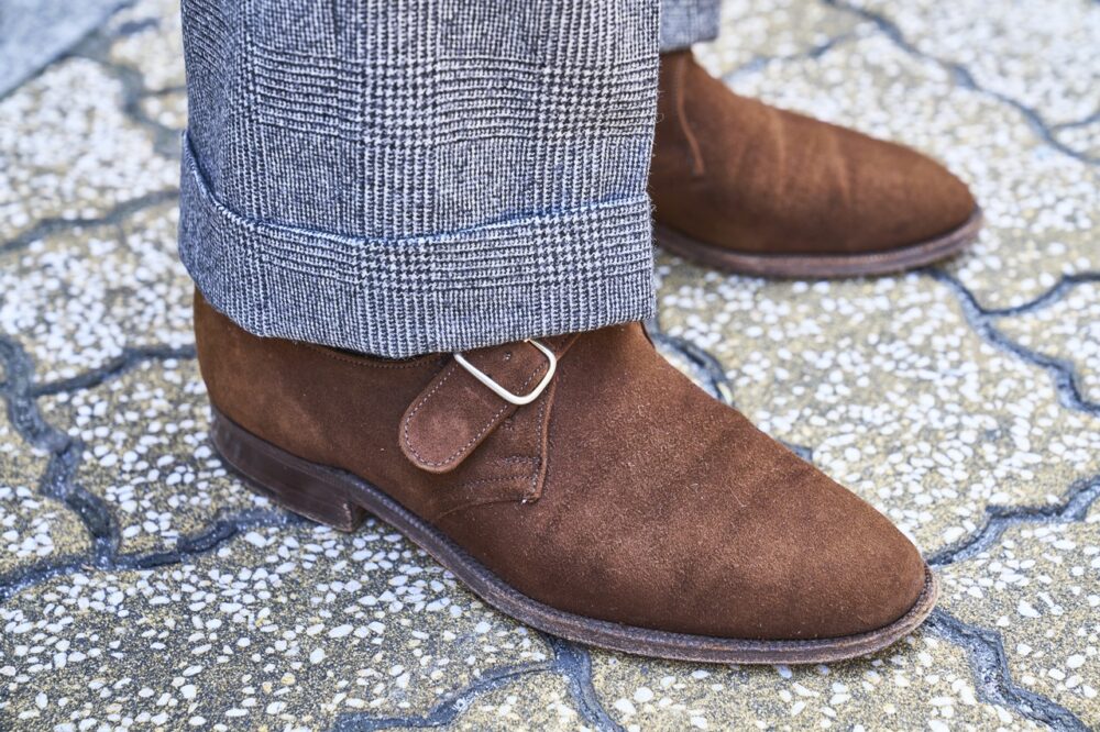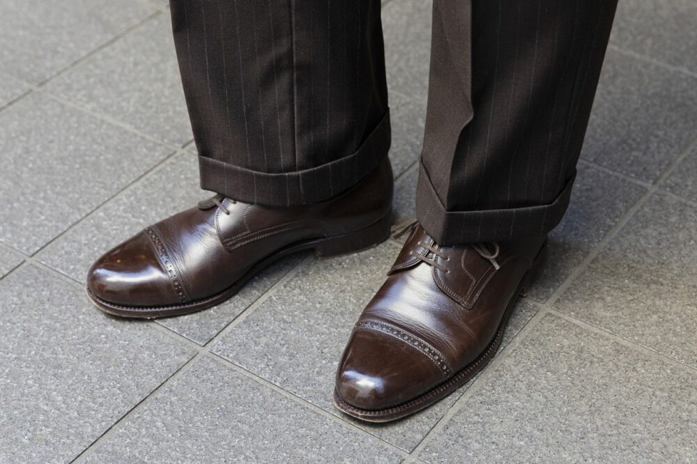 ベーシックなグレンブレードの英国的なスタイルを実践。スタンダードなグレーカラーに、あえてブラウン系のタイやシューズを合わせている点が見逃せない 。