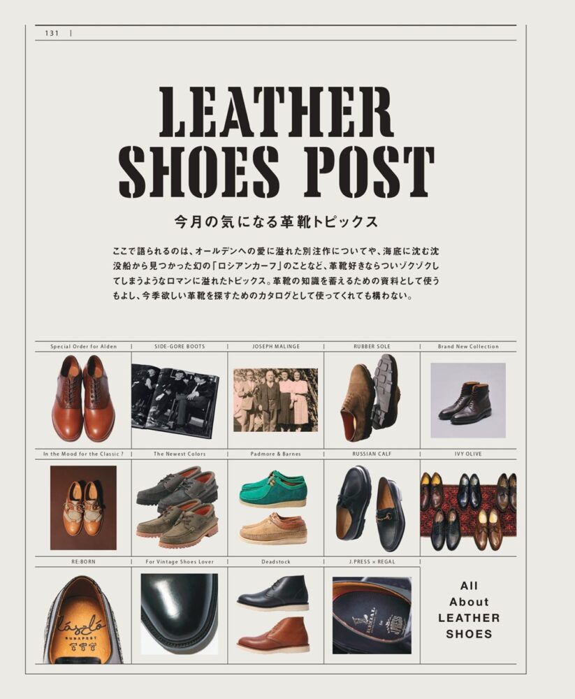 日夜リサーチを重ねて集めた革靴のなかから、特に要注目のネタを厳選。今季の「Alden(オールデン)」別注や、沈没船のなかから見つかったという幻のロシアンカーフを再現した革「ハッチグレイン」と「ユタカーフ」について、「Timberland(ティンバーランド)」の名作[3アイクラシックラグ]の新色などなど。今季買いたい革靴を探すためのショッピングカタログとして使うもよし、革靴の知識を深めるための参考書として使うもよし。とにかくどこよりも濃い計14の革靴ネタが詰まった永久保存版的コンテンツなのである!