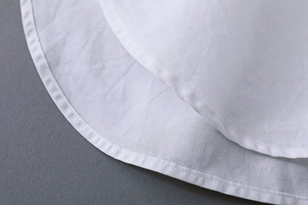 縫い代はドレス工場の高い縫製技術を活かしたの細い巻き縫い仕様。タックアウトしてもだらしなく見えない秘密はここにある。