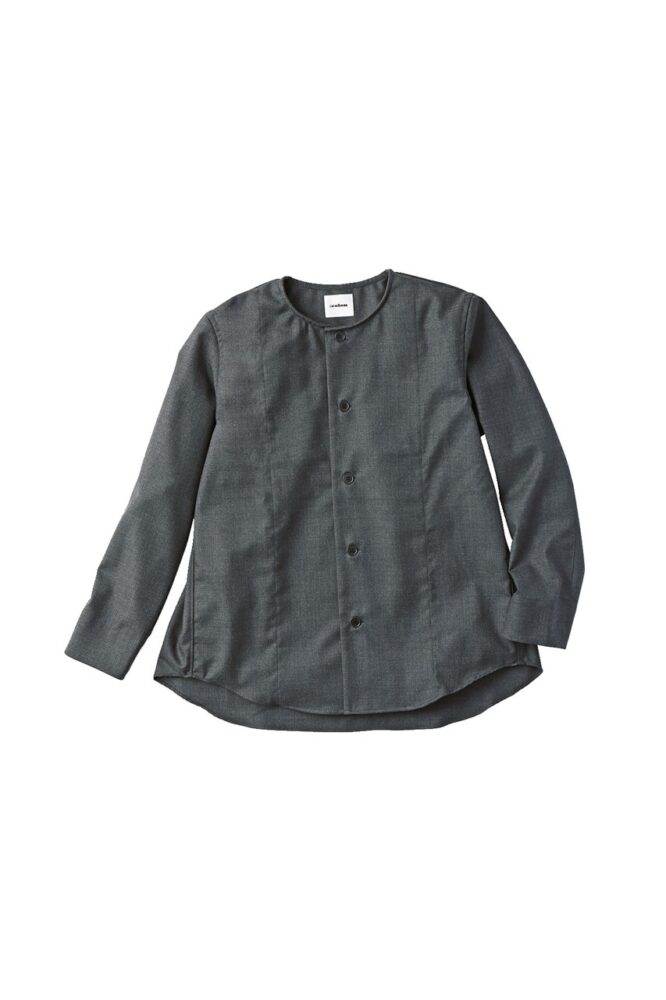 広めの天巾でレイヤードを楽しむことができるシャツジャケット。立体的パターンと背面のボックスプリーツにより動きのあるシルエットに。起毛素材のウールサキソニーが上品さを醸す。3万5200円