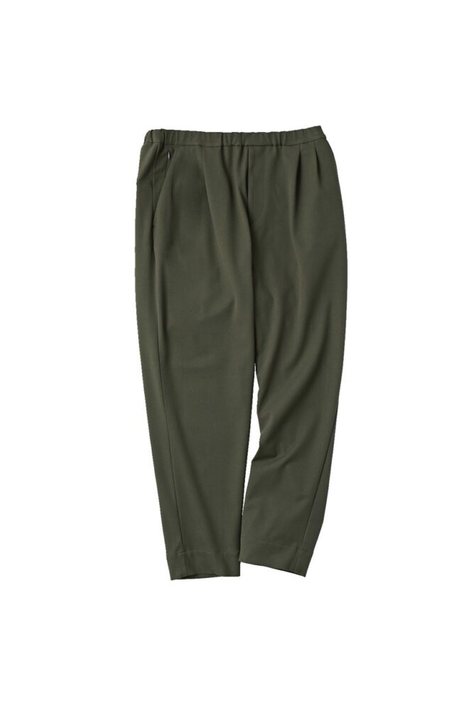 ストレッチの効いたウール調ファブリックにウエストはゴム仕様のコンフォータブルに仕上げ。その分、通常よりも一段強くテーパードを効かせたペグトップシルエットに仕立てられている。3万5200円