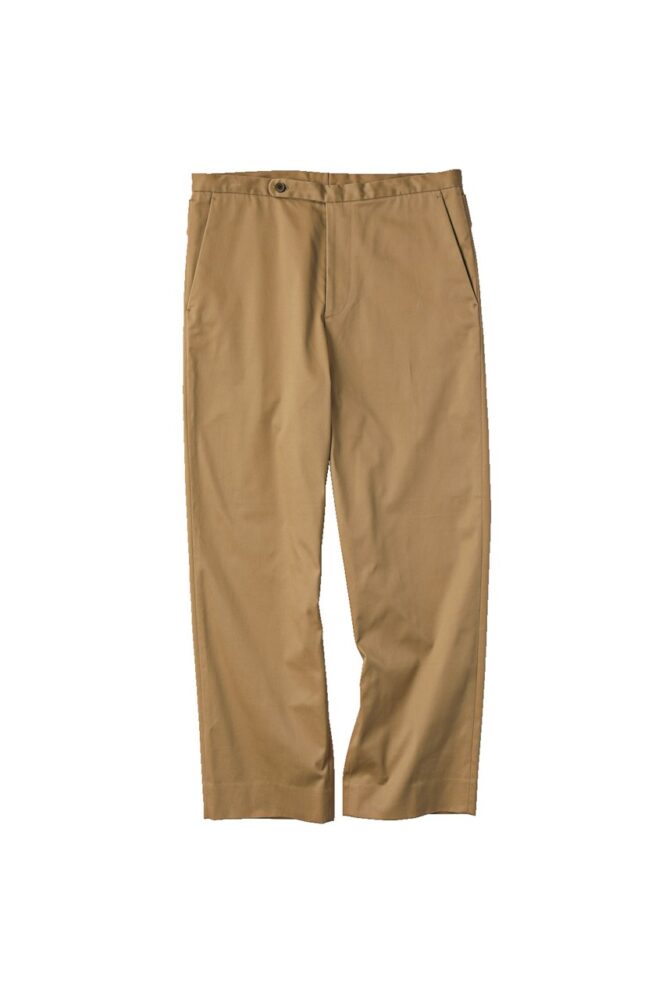 プリーツやベルトループを排した、非常にシンプルなデザイン。ウエスト周りは細く、サイドアジャスターがどこか1980年代の趣きを醸す。生地は厚手のストレッチチノで至極カジュアル。3万800円
