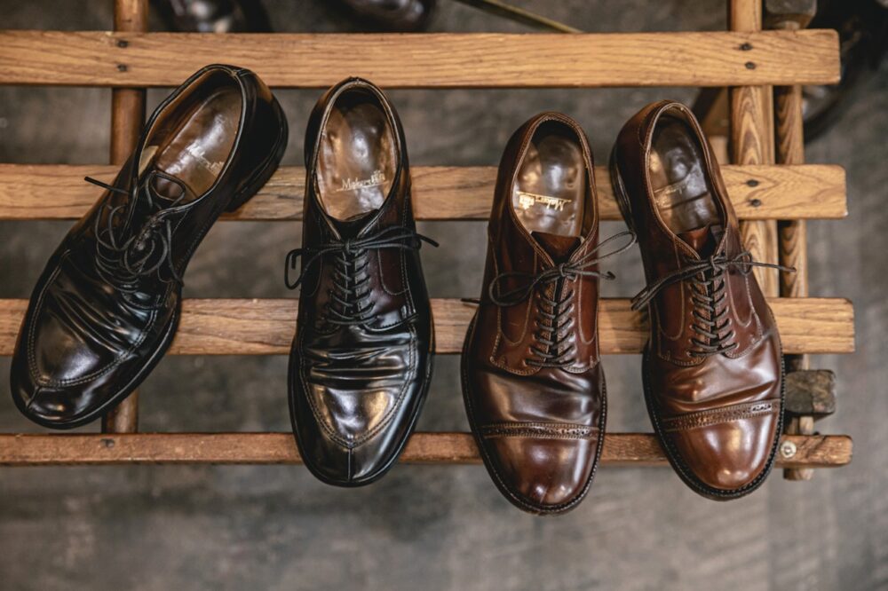 手嶋 同感ですね。今日、持ってきたコードバンの2足も、6年とか10年とか履き込んだものですけど、メイカーズの展示会でも同じように経年変化した靴を大量に用意します。やっぱり履き続けるとどうなるか、それが気になる人が多いんです。