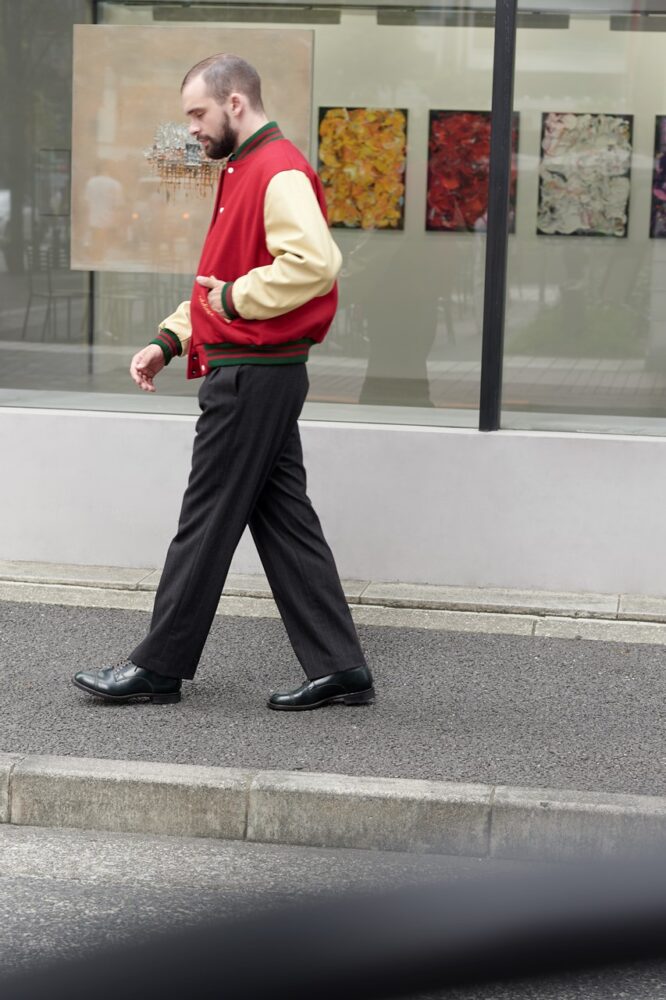 続いては褪色したジーパンがこなれたトラッドスタイルを演出するこちらの着こなし。着用したのはV TIP BLUCHER。