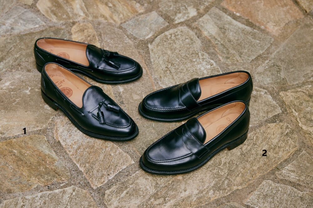 甲の高さを抑えたスマートなトゥが特徴的な214の木型、そして革の立ちを抑えたモカ縫いがタッセルローファーの色気をいっそう引き立てる。さらに同社の類い稀な職人技は甲革のエッジが描く緩やかな曲線からも。8万2500円