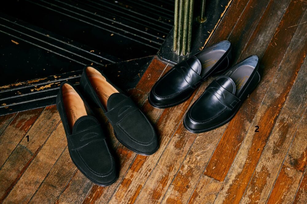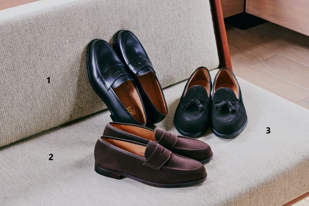 名ローファーの系譜を受け継ぐツイストモカで仕上げた正統派な一足。とはいえうっすらモダンさも感じられるのは、甲周りから踵を小ぶりに改良しフィッティングとスマートさに磨きをかけたところが大きい。カーフ 9万200円、スウェード8万1400円
