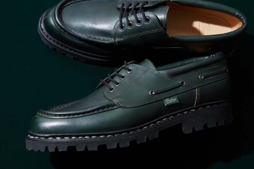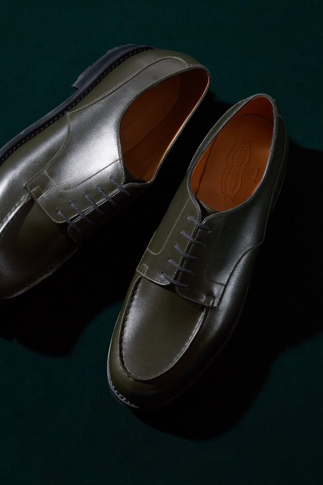 比較的新しいモデルとなる「シメイ 」。サイドレースと厚みのあるラグソールがクラシックな重厚さを見せる一方で、ノーズがやや長いラストを使用しておりスッキリとしたシェイプに。8万300円(パラブーツ 青山店 TEL03-5766-6688)
