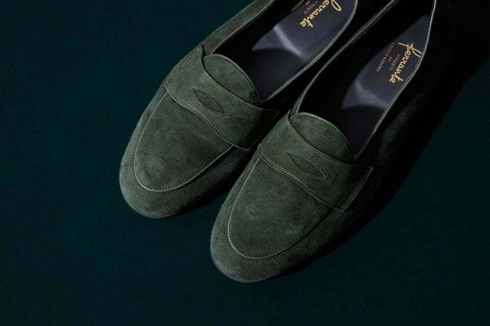 「ビーフロール」と呼ばれる特徴的なモカ縫いのローファーを世に生み出し、いまだ多くの革靴好きから愛 される。そんなオリジネーターから今季、グリーンカラーが登場。2万9700円(ジーエイチバス トウキョウTEL03-5843-0777)