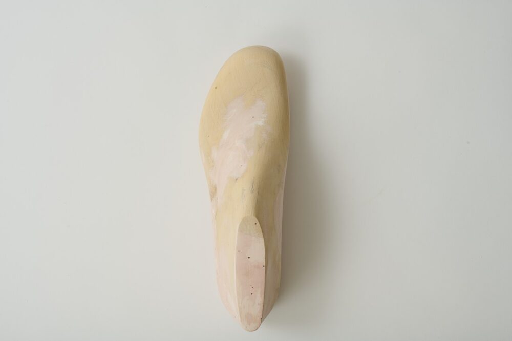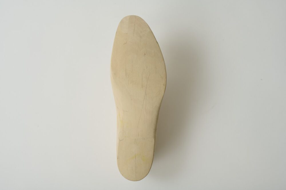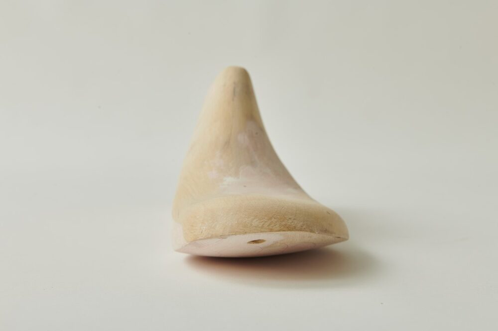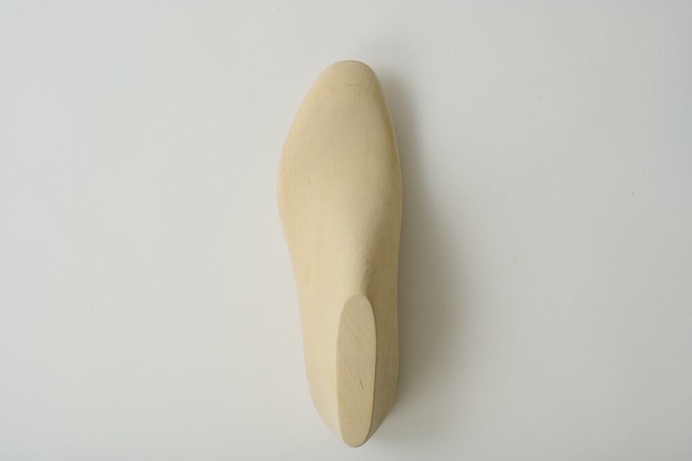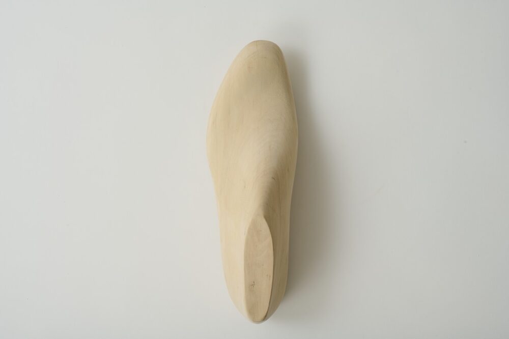 10年前に出会ったという、60年代以前に作られた詳細不明の英国製ラスト。「とにかくこの木型の特徴は「えぐり」。革靴をイメージしながら斜めから見ると分かりますが、羽根の部分が異様にえぐれています。『こういう表現があるのか』と衝撃を受け、以来この木型に最も影響を受けていますね。機能性をちゃんと備えたうえで、単体でここまで凄みが感じられる木型は稀有です」