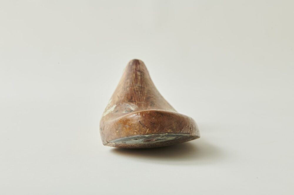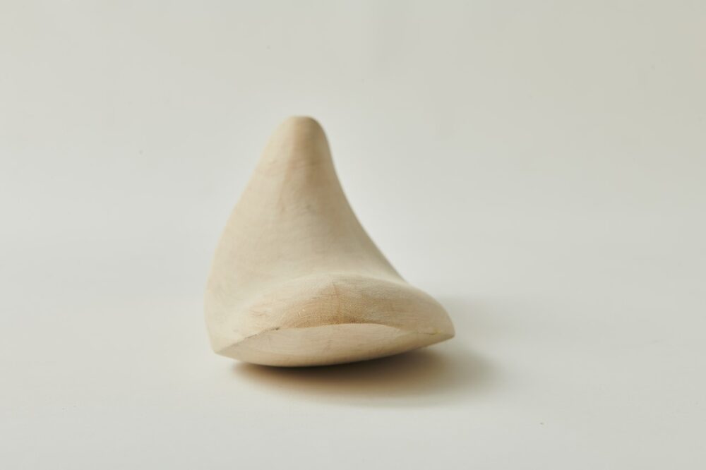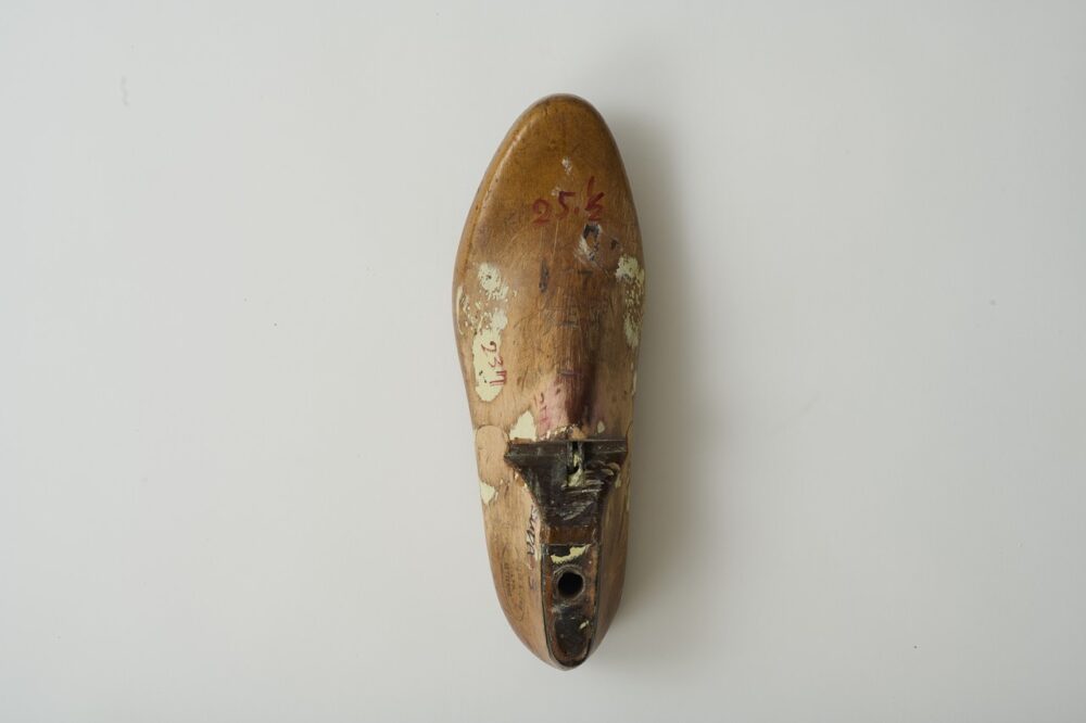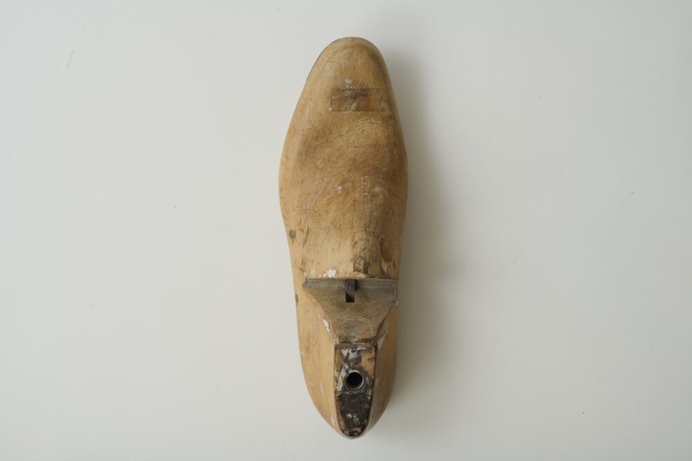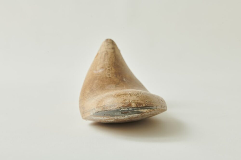 10年前に出会ったという、60年代以前に作られた詳細不明の英国製ラスト。「とにかくこの木型の特徴は「えぐり」。革靴をイメージしながら斜めから見ると分かりますが、羽根の部分が異様にえぐれています。『こういう表現があるのか』と衝撃を受け、以来この木型に最も影響を受けていますね。機能性をちゃんと備えたうえで、単体でここまで凄みが感じられる木型は稀有です」
