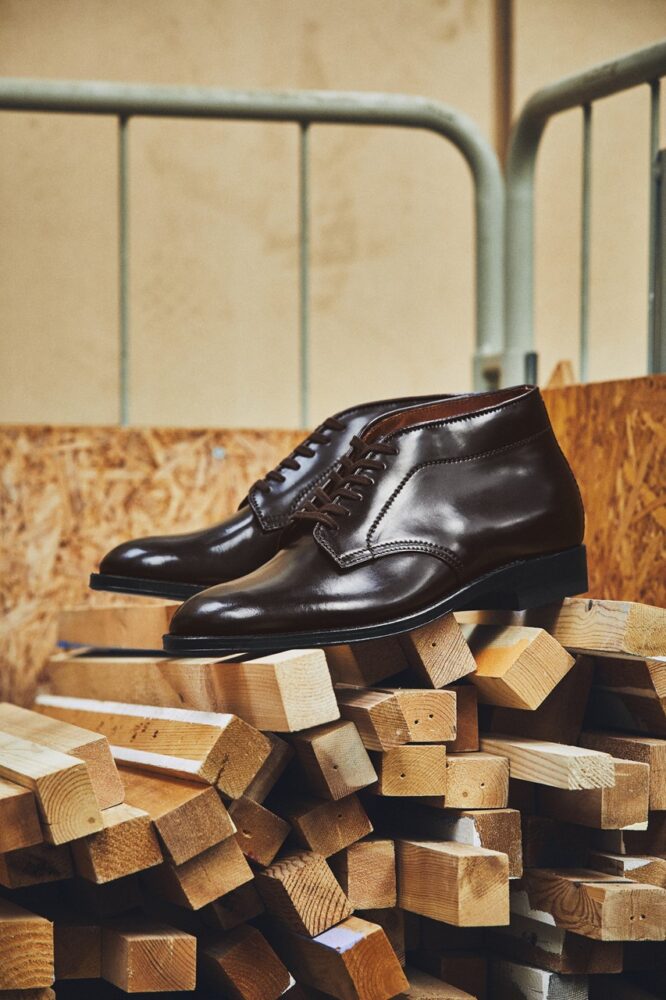 知る人ぞ知る6アイレットのチャッカブーツに、コードバン、モディファイドラストとフリークにはたまらない別注内容となった注目作。柔らかなフレックスコンストラクションソールなので、歩きやすいにも嬉しい。18万2600円(マーガレットハウエル神南店 TEL03-5459-3723)