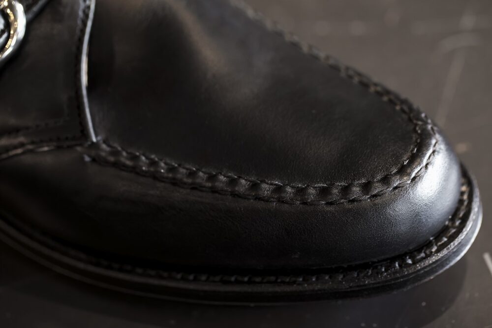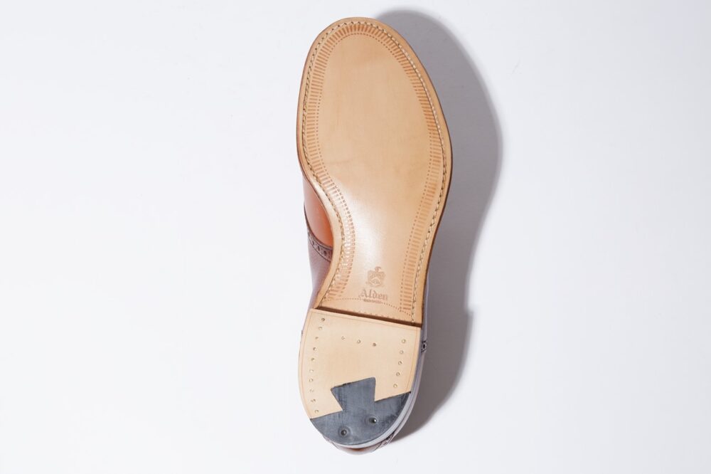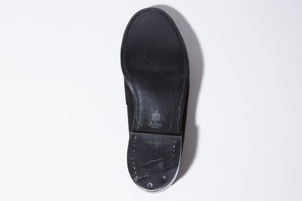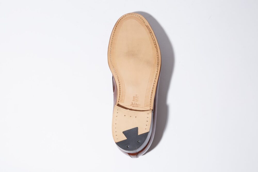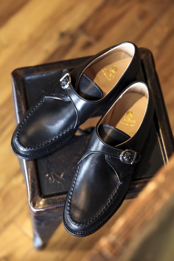 「〝王道のモデルをベースに直球勝負で!〟という方向性とは違う別注を目指しました。ネタとして、7年ほど前にプライベートで欧州を周った際にパリのアナトミカで購入したオールデンがあったんです。それが、ブラウンのクロムエクセルレザーを使ったハンドソーンモンク。ジャケパンのように少し落ち着いたスタイルにも合わせられるようにブラックのクロムエクセルレザーで別注しました。