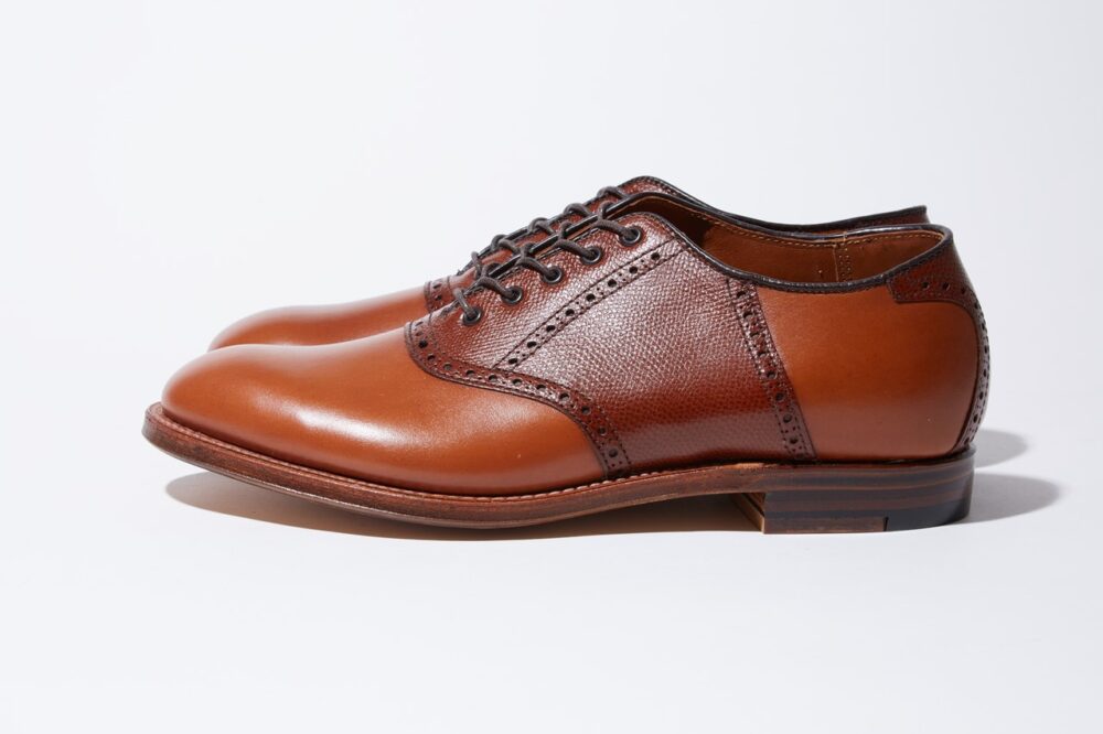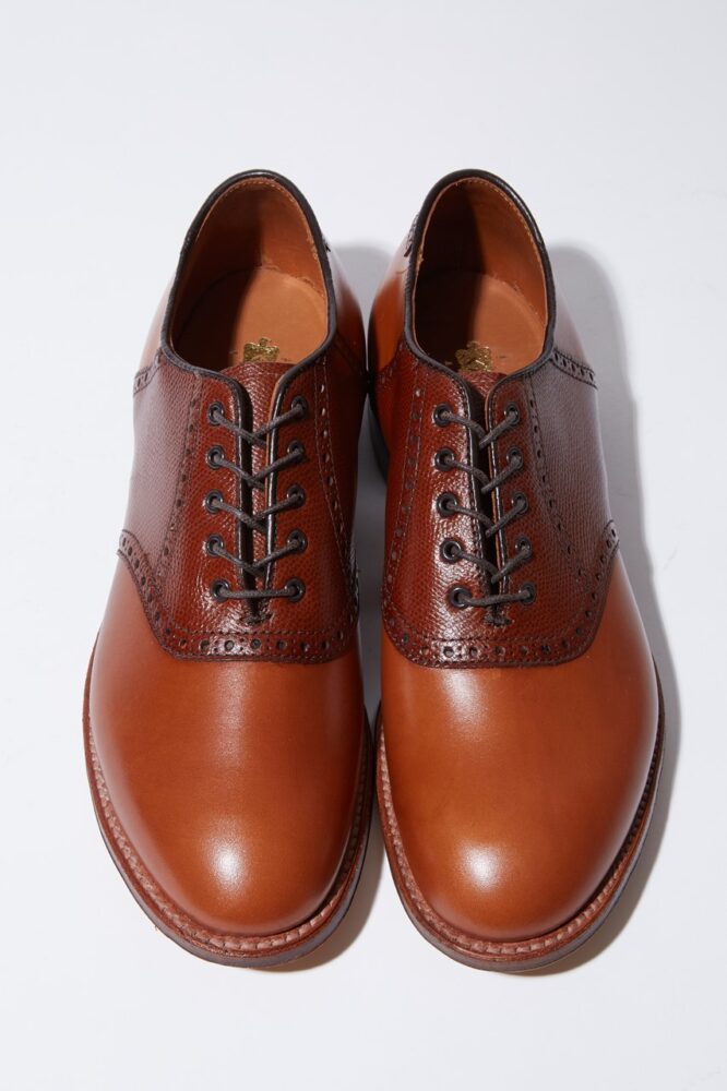 エレガントなドレスカーフに、重厚感のある型押しのアルパイングレインのコンビでオーダーしたサドルオックス。あえて同系色にした通な配色に、ファンの多いモディファイドラストで仕上げたのがたまらない。 11万6600円(ベイブルック)